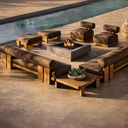 The TerraFirme Ember Lounge & Firepit Set is designed for those who demand the best. This fully-equipped outdoor set is built with solid teak frames and high-density performance cushions, including modular lounge seating, ottomans, and a centerpiece firepit crafted from reinforced concrete. With enough space to accommodate gatherings of family and friends, this set also features a stylish and highly functional layout, perfect for the ultimate outdoor relaxation experience.
